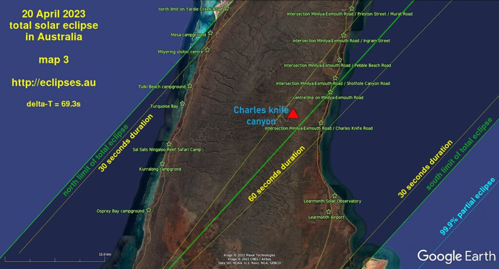 The group was very excited and celebrated their success by sharing their experience and feelings. Charles Knife Canyon, less than two kms from the center line was a prime viewing destination for this eclipse and observers were very pleased they did their best to hike to this point early in the morning. Many people had seen the eclipse at Exmouth beach.