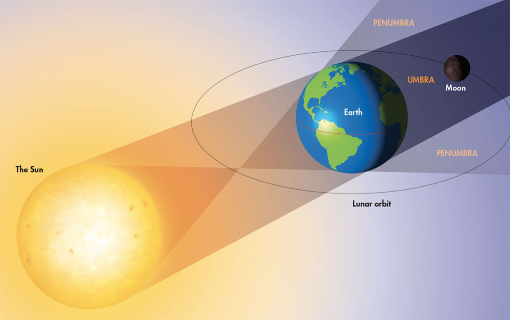 Los eclipses lunares ocurren cuando la Tierra queda situada entre la Luna y el Sol. Este fenómeno únicamente puede pasar en la fase Luna llena. Durante un eclipse lunar la Luna queda inmersa en el cono de sombra de la Tierra por lo tanto la luz del Sol ya no llega directamente a su superficie.